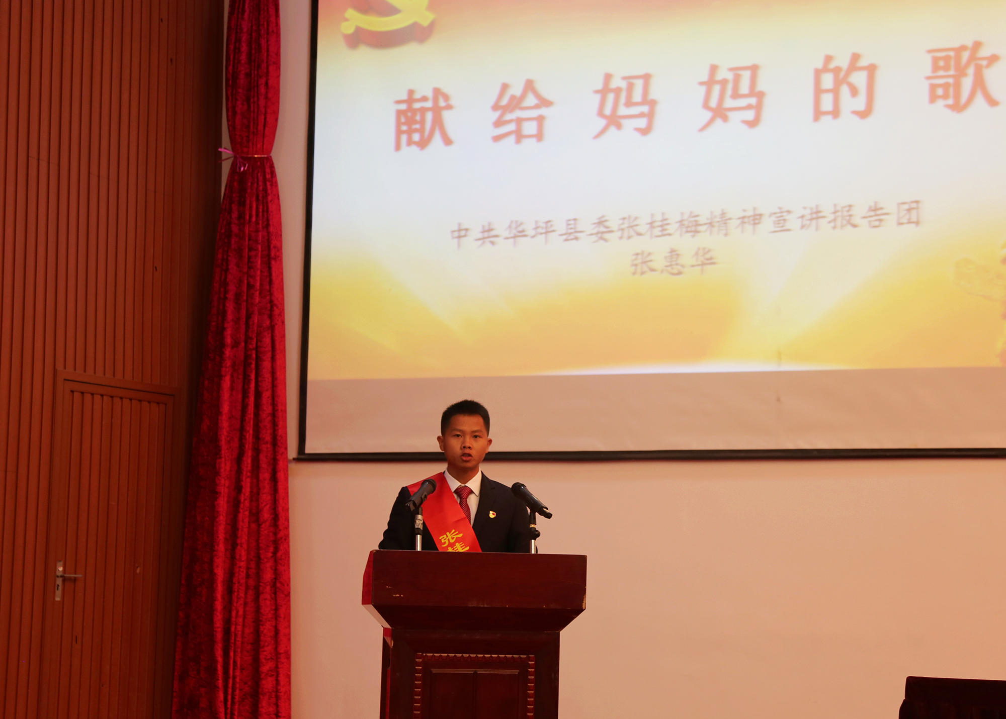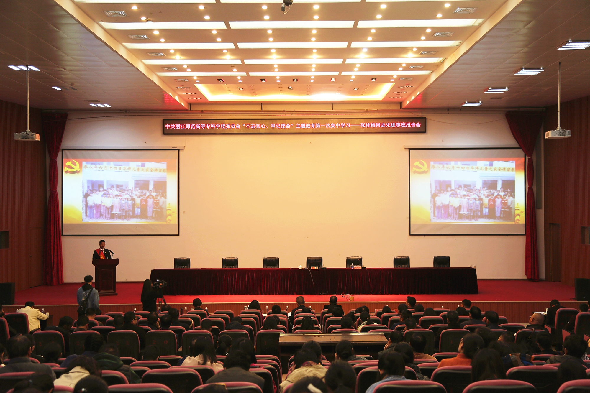 为在“不忘初心、牢记使命”主题教育中深入开展先进典型教育,号召全校广大党员干部、师生群众向身边先进典型学习,把事业放在心上,把责任扛在肩上,把人民群众放在心中最高位置,见贤思齐、化风成俗。在此次“不忘初心、牢记使命”主题教育中,9月24日下午,我校邀请张桂梅先进事迹宣讲团到校作张桂梅同志先进事迹报告。报告会在图书馆报告厅举行,全校教职工、思政专业学生、入党积极分子共500余人参加了报告会,报告会由党委书记张祖武主持。