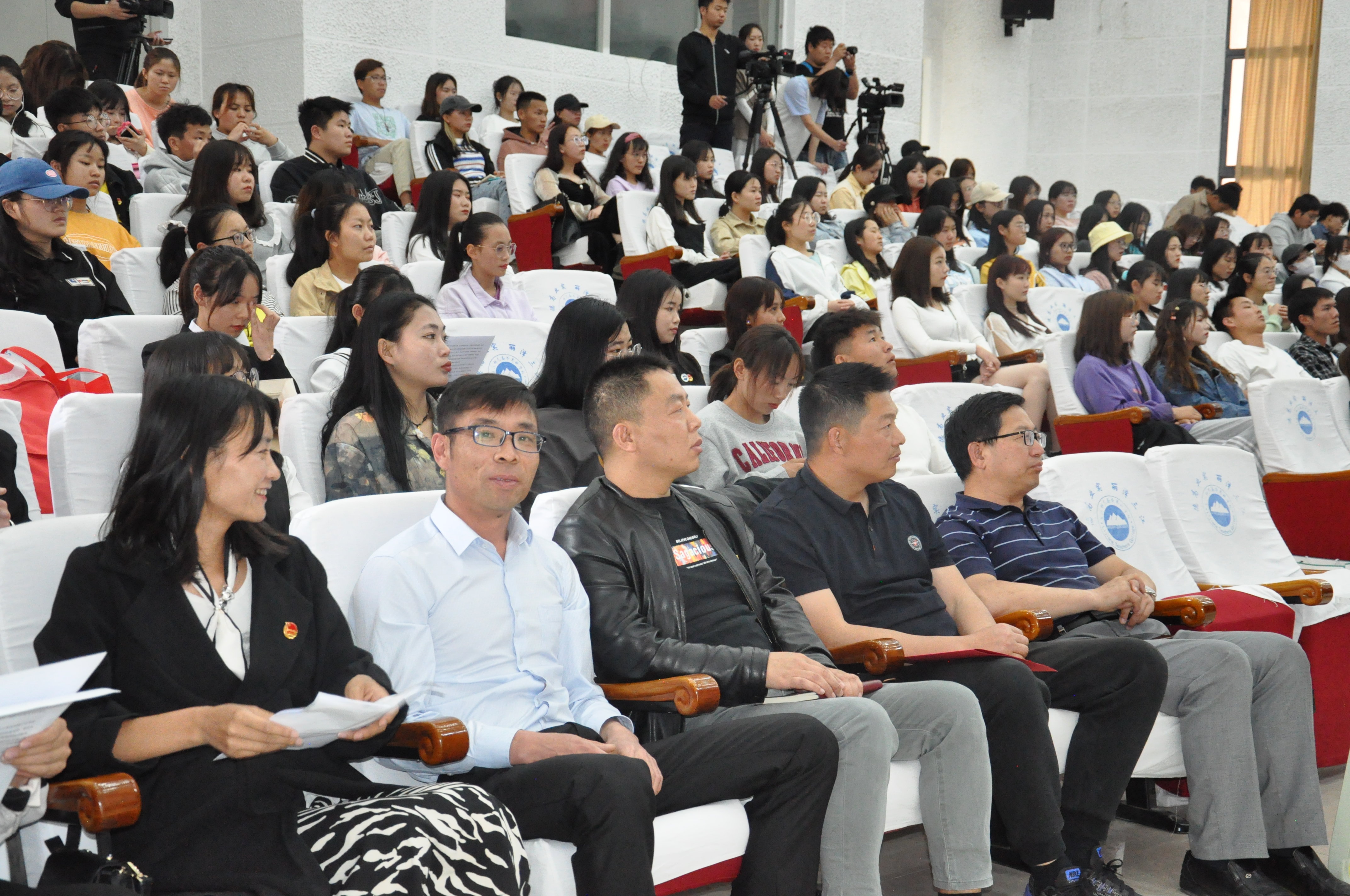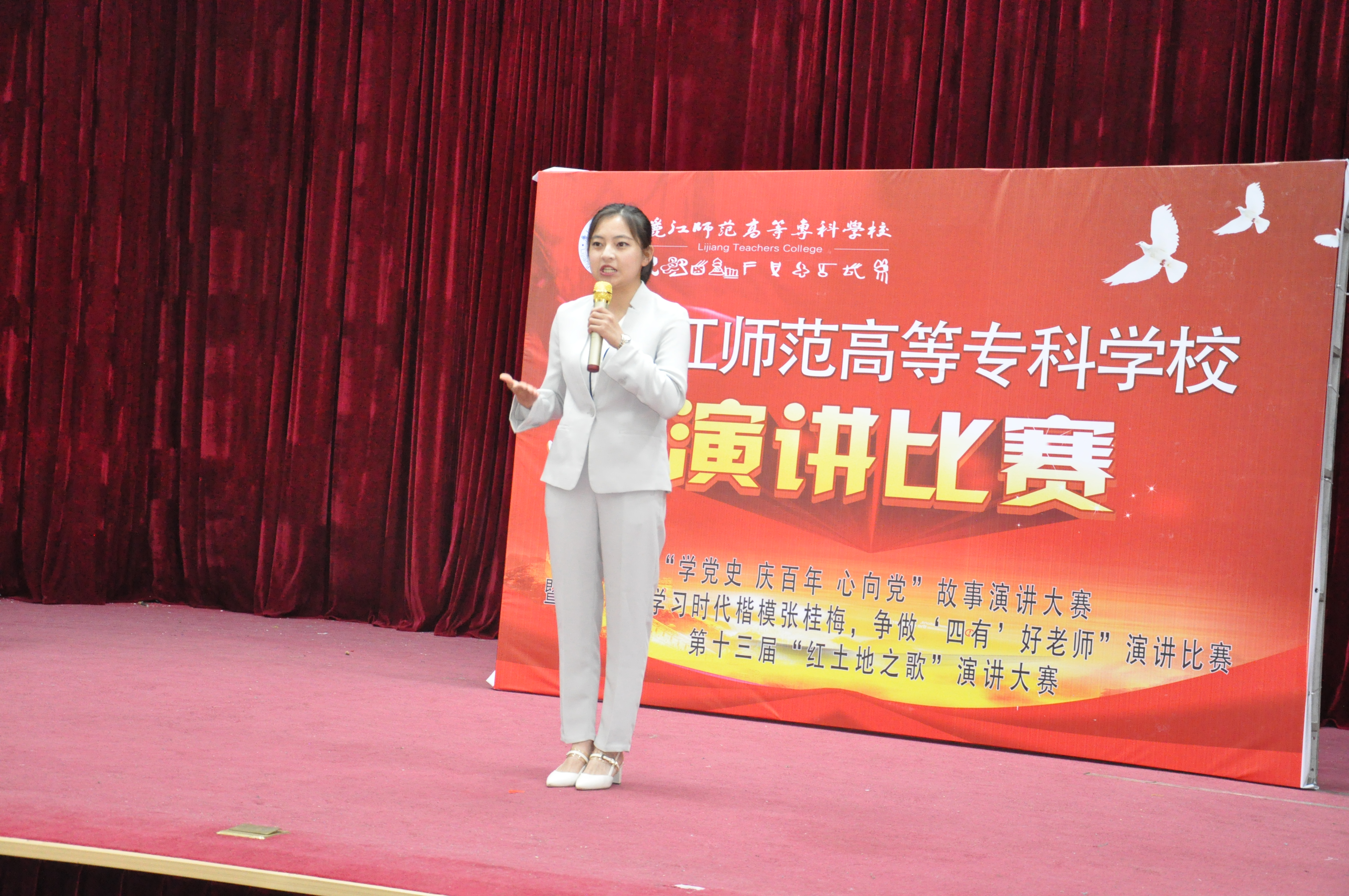 4月30日,学校举办“学党史 庆百年 心向党”暨第二届“学习时代楷模张桂梅,争做‘四有’好老师”演讲比赛、第十三届“红土地之歌”演讲大赛复赛,来自各学院的13名教师、12名青年学子参加比赛,150余名学生观看比赛。本次演讲比赛,以“庆建党百年育时代新人”为主题。比赛在艺术楼演播厅拉开序幕。