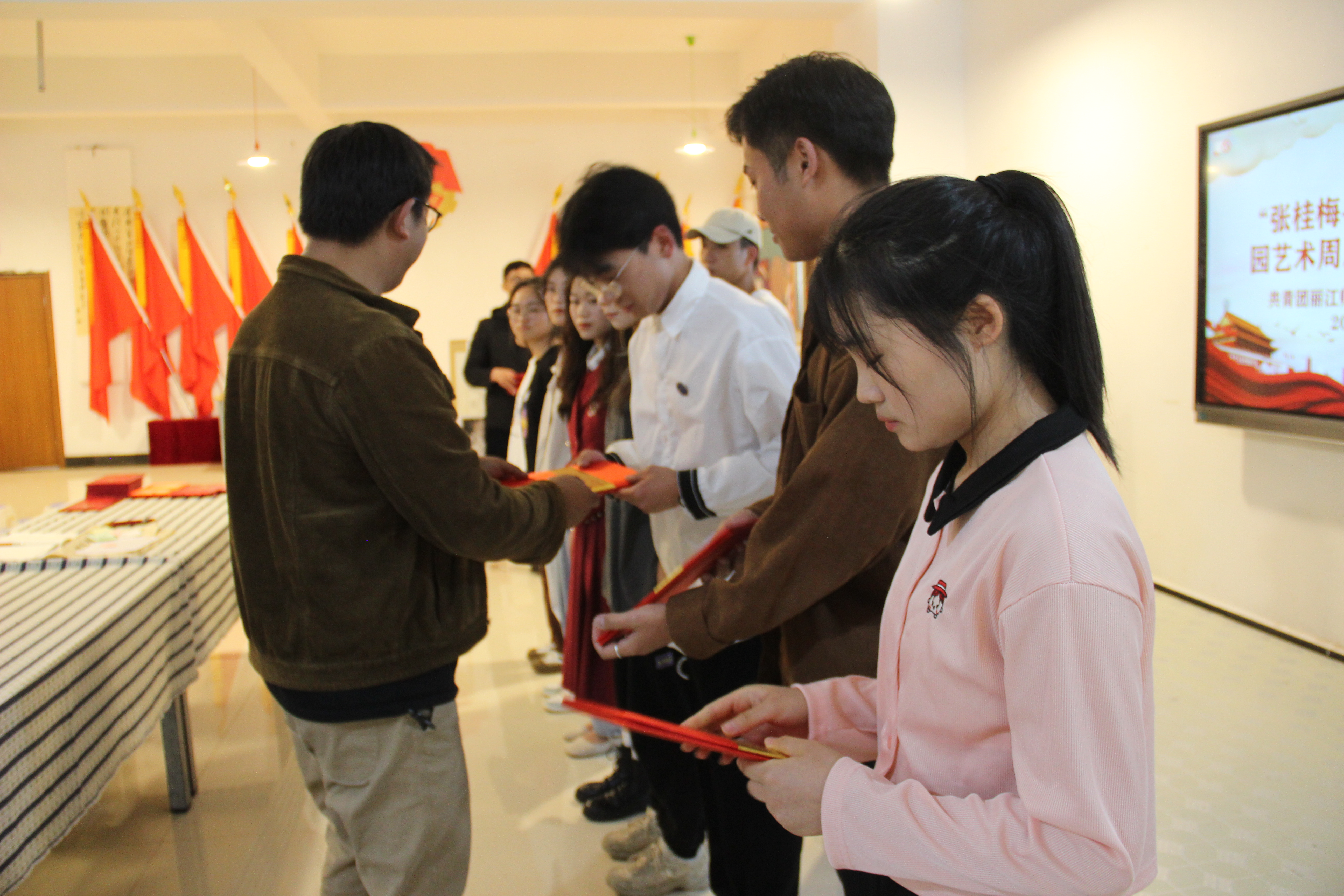 她用点点星火照亮了山区的教育,用一束阳光温暖了山区孩子的梦,她是时代的楷模,是教育界的一颗星,是我校最杰出的校友。为更好的宣传桂梅精神,学校组织开展“我眼中的校友张桂梅老师”视频采访活动,对师生进行采访,并录制视频;由艺术学院王飞、蔡晓龄老师等《桂梅赞》主创团队部分师生通过“青年大讲坛”为同学们分享歌剧《桂梅赞》在创作过程中的体会感悟,表演其中精彩的节目,让学生进一步加强对张桂梅先进事迹的理解,利用校园广播持续播放关于张桂梅老师相关的事迹、故事等;南广场大屏利用课余时间不间断播放歌剧《桂梅赞》公演视频,校园内布置艺术周活动宣传横幅、海报等;组织开展“张桂梅—榜样的力量”校园艺术周系列活动总结大会暨“五四”表彰活动。
